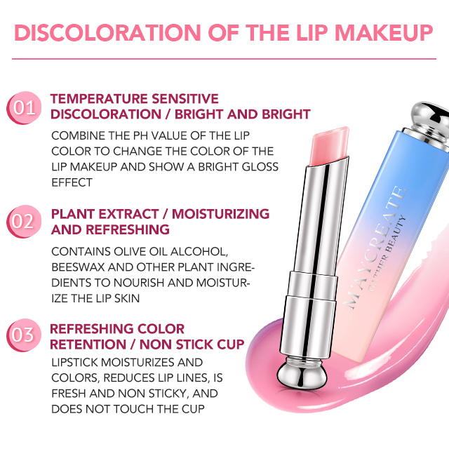 3.Formula ce iin contact cu pielea buzelor culoarea se schimba din mai pal in intens in functie de PH-ul fiecaruia.